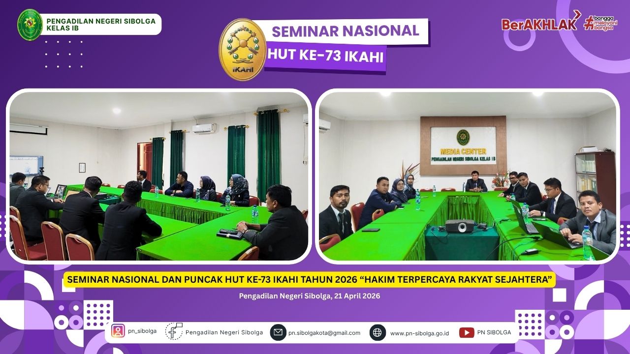 Sibolga – Ikatan Hakim Indonesia (IKAHI) Cabang Sibolga turut berpartisipasi dalam kegiatan Seminar Nasional dan Puncak Peringatan Hari Ulang Tahun (HUT) ke-73 IKAHI Tahun 2026 yang diselenggarakan secara hybrid oleh Pengurus Pusat IKAHI.