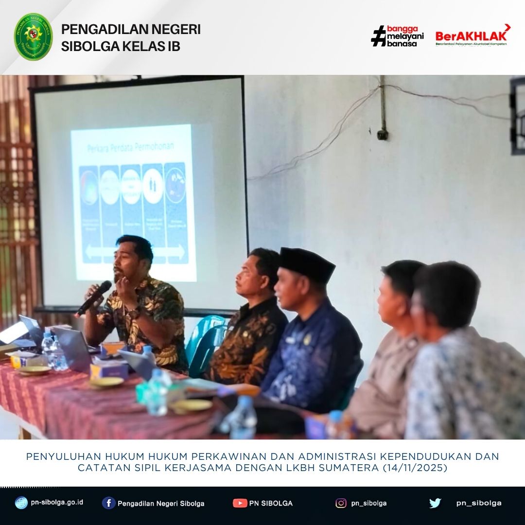 Pengadilan Negeri Sibolga bersama Lembaga Konsultasi dan Bantuan Hukum (LKBH) Sumatera melaksanakan kegiatan penyuluhan hukum non-litigasi sebagai bagian dari upaya peningkatan pemahaman masyarakat di bidang hukum.