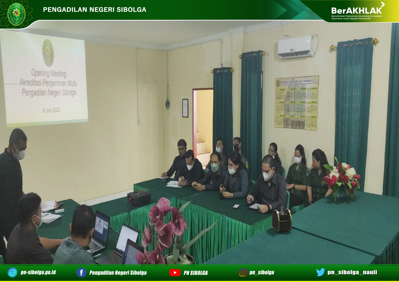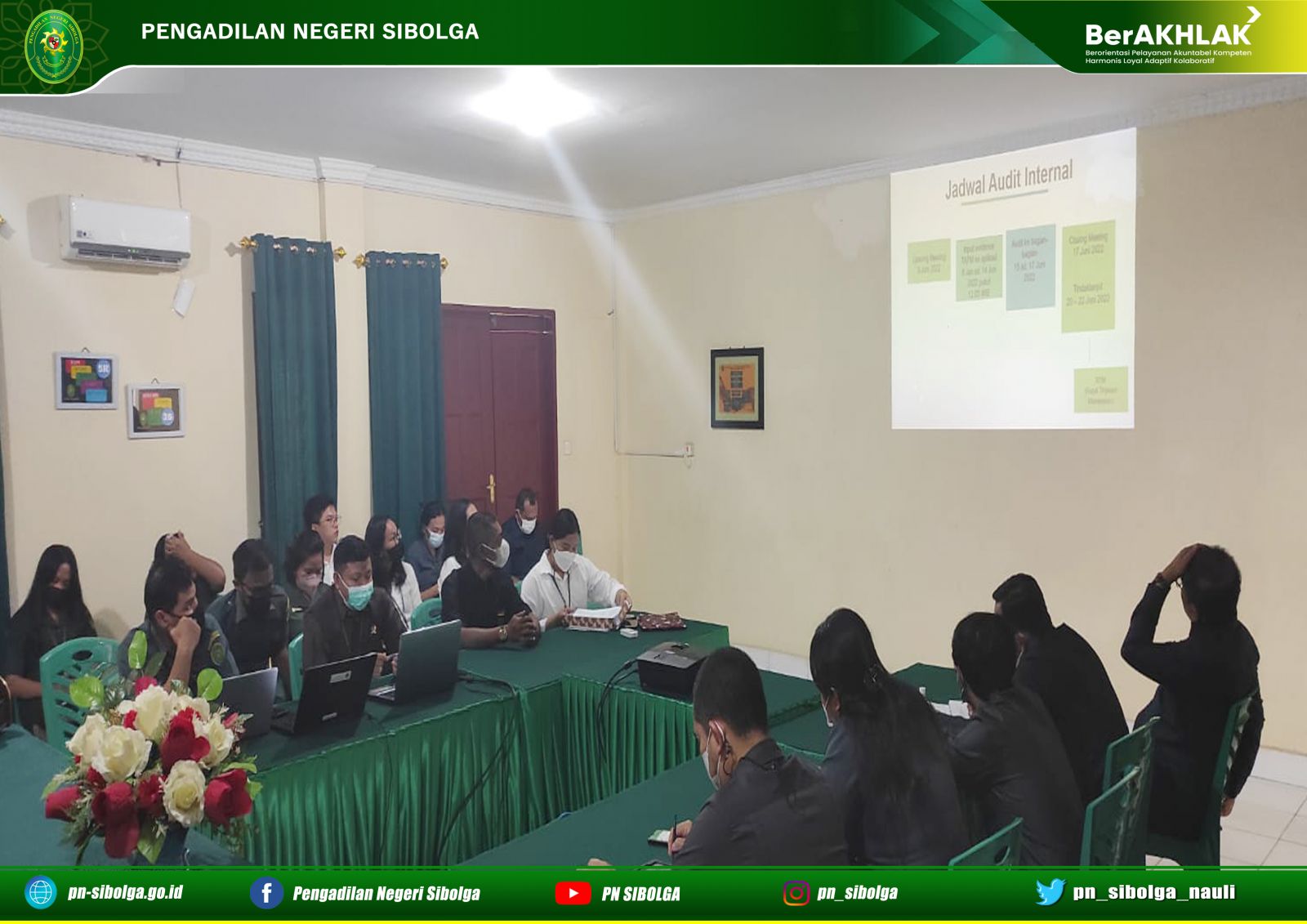 Pada hari Rabu tanggal 08 Juni 2022 pukul 09.00 WIB bertempat di ruang rapat Pengadilan Negeri Sibolga, telah dilaksanakan acara Opening Meeting Audit Internal Akreditasi Penjaminan Mutu Pengadilan Negeri Sibolga. Acara dibuka oleh Bapak Fitrah Akbar Citrawan, S.H., M.H. sebagai Tim Audit Internal pada Pengadilan Negeri Sibolga, Acara ini dihadiri oleh Quality Management Representative (QMR), para Hakim, Pejabat Struktural dan Fungsional serta seluruh pegawai, cpns dan PPNPN Pengadilan Negeri Sibolga.