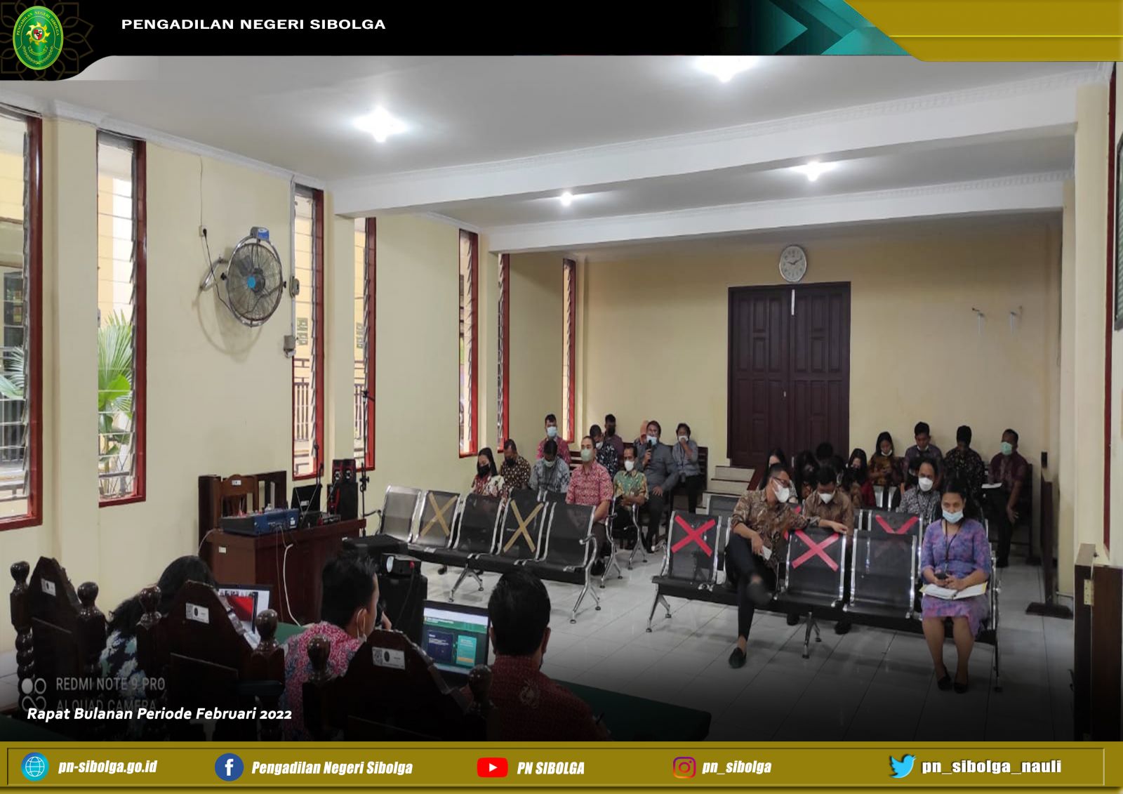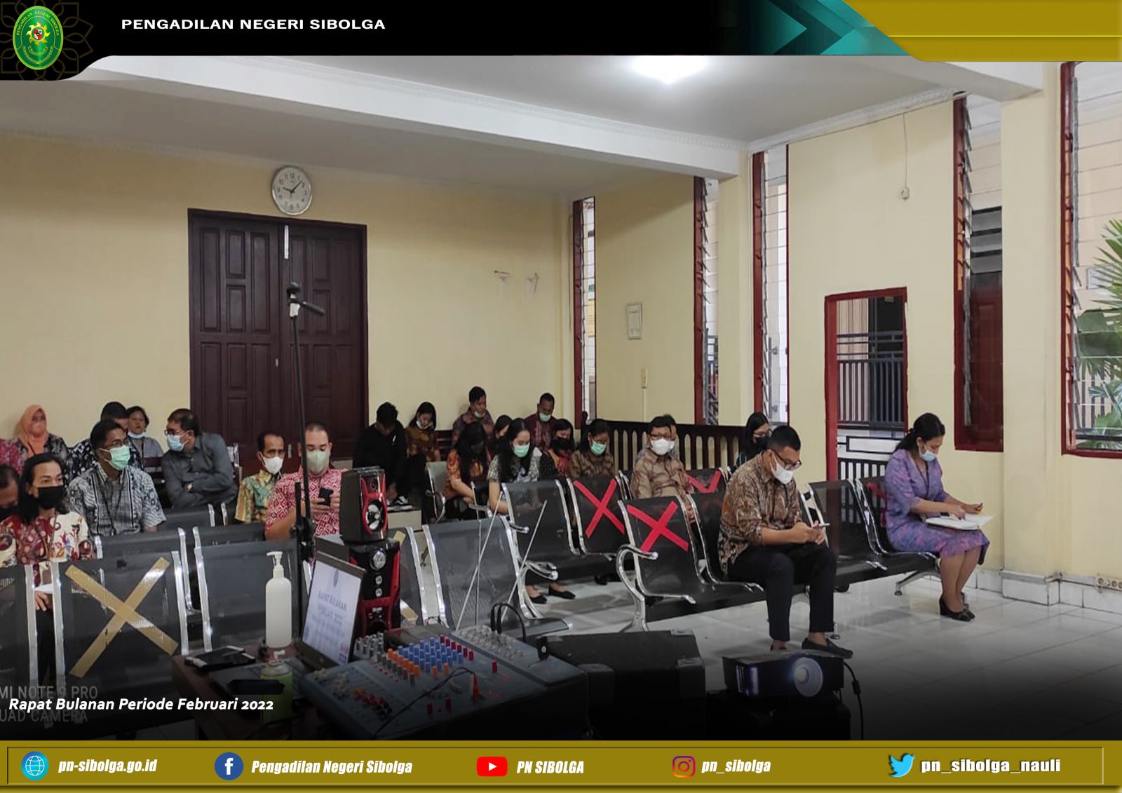 Rapat bulanan dan pembinaan dipimpin oleh Ibu Gabe Dorris Mora Boru Saragih, S.H., M.H. selaku Ketua Pengadilan Negeri Sibolga dan dihadiri oleh seluruh aparatur Pengadilan Negeri Sibolga. Dalam rapat bulanan tersebut para peserta rapat membahas kinerja Kepaniteraan Pidana, Kepaniteraan Perdata, Kepaniteraan Hukum, Subbagian Umum dan Keuangan, Subbagian Kepegawaian, Organisasi dan Tata Laksana, serta Subbagian Perencanaan Teknologi Informasi dan Pelaporan sepanjang bulan Februari 2022 yang dimulai dengan penyampaian laporan dari Hakim Pengawas Bidang Kepaniteraan dan Kesekretariatan terkait kinerja masing-masing bagian, serta tetap mengingatkan PERMA 7, 8, dan 9 kepada seluruh aparatur Pengadilan Negeri Sibolga.